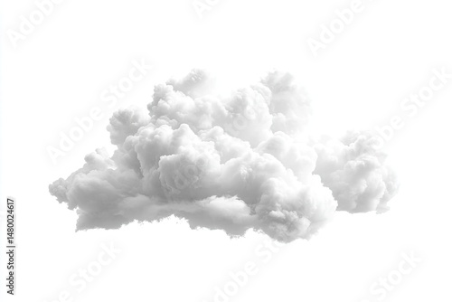 Fluffy white cloud against a stark white background. Detailed and textured cloud formation