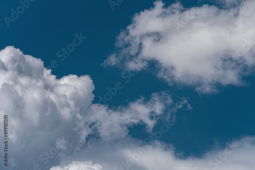 Fluffy white clouds in a blue sky. Heavenly background.