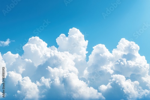 Fluffy white cumulus clouds bright blue sky