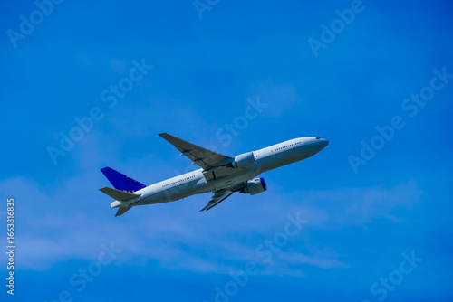 Flugzeug an blauem Himmel nach Start