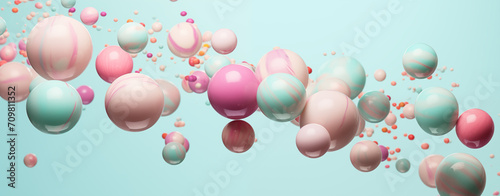 fluid geometry.Many 3d renderings of colorful balls flying in the air