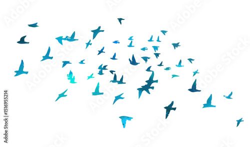 Flying birds blue silhouette flock. hand drawing. Not AI. Vector illustration