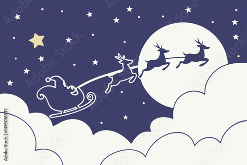 flying sleigh above clouds with stars dreamy vector illustration