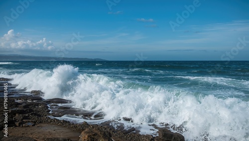 Foamy ocean waves crashing on the shore, showcasing the dynamic interplay of water and sand