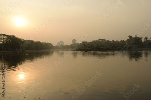 foggy morning at sabindra sarobar lake, kolkata, west bengal, india