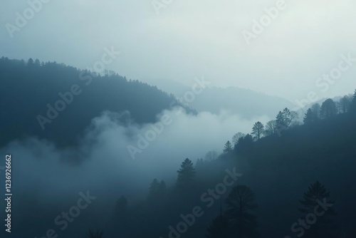 Foggy morning with billow of white smoke on dark grey background, nature, , mist