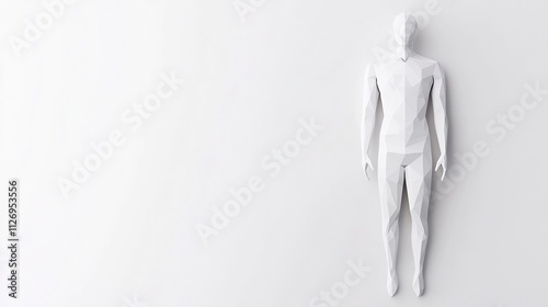 Folded Paper Human Figure Sculpture on Plain White Background