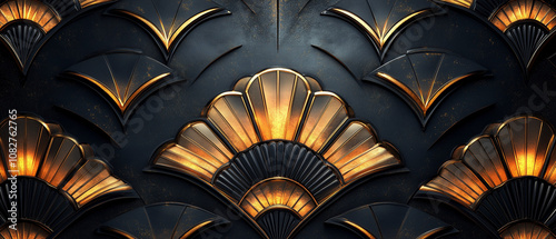 Fond Art Déco avec motifs géométriques noirs et dorés