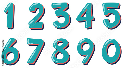 Font design for number one to zero on white background