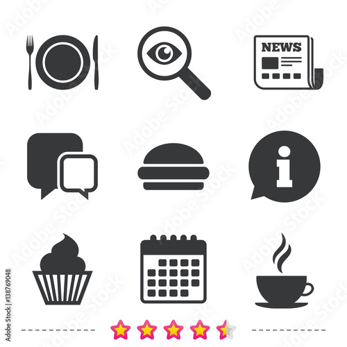 Food icons. Muffin cupcake symbol. Fork, knife.