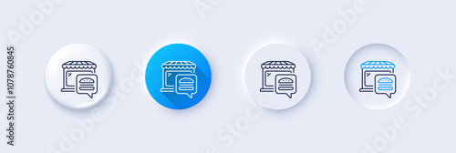 Food market line icon. Neumorphic, Blue gradient, 3d pin buttons. Fast food restaurant sign. Retail marketplace symbol. Line icons. Neumorphic buttons with outline signs. Vector
