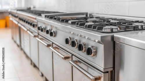 Food safety sanitation certification concept. Efficient Commercial Kitchen with Modern Cooking Equipment and Sanitation Protocols