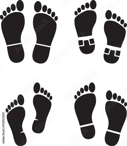 Footprint Human Shoe Track Silhouette Vector Set vector illustration