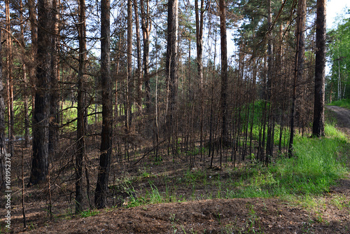 Forest Fire Damage Burned Trees and Landscape