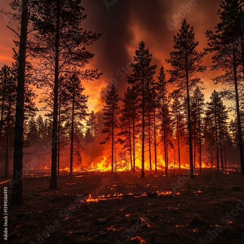 Forest fire in a pine wood