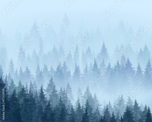 Forest in the fog. Minimalistic illustration. Digital drawing.