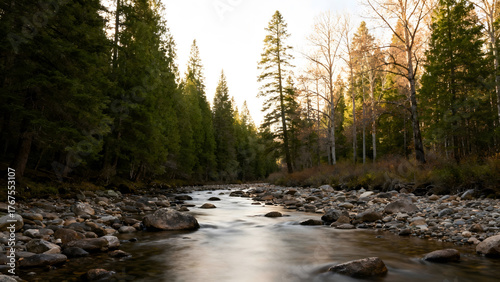 Forest stream with tall trees