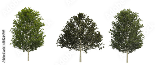 Forest trees shapes cutout 3d render png set