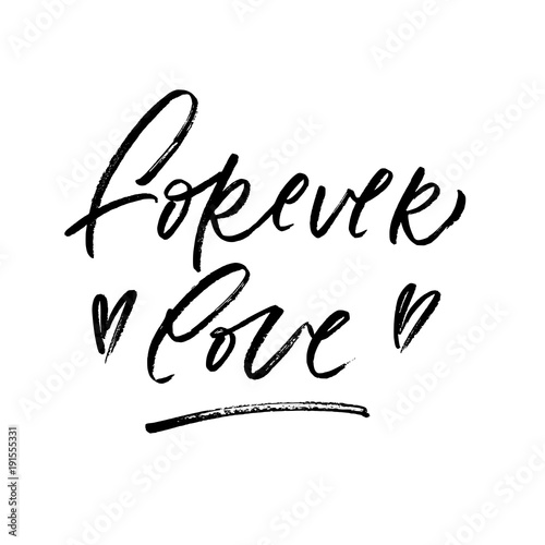 Forever love. Valentine's Day calligraphy phrases. Hand drawn romantic postcard. Modern romantic lettering. Isolated on white background.