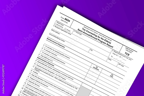Form 8654 documentation published IRS USA 04.20.2016. American tax document on colored