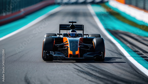 Formula 1 car speeding on race track in dynamic motion