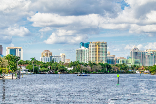 Fort Lauderdale, FL - February 29, 2016: Beautiful city canals on a sunny winter day