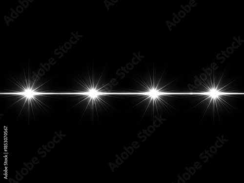Four Bright White Light Bursts on Black Background
