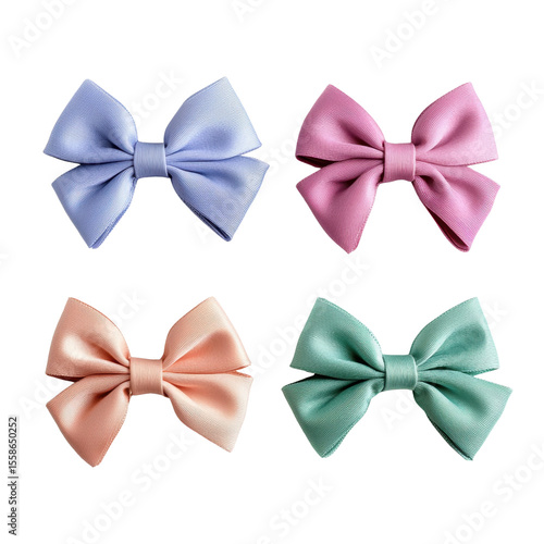 Four Colorful Hair Bows in Soft Fabric for Stylish Accessories and Fashion Itemstransparent background transparent background