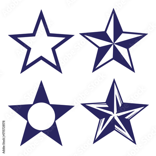 Four dark blue star designs with various styles on a white background vector illustration