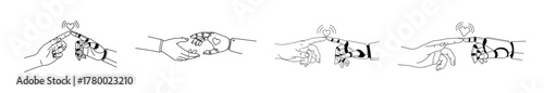 Four distinct illustrations of hands shaking, symbolizing agreement, partnership, or greeting in a minimalist line art style.