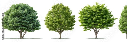 Four green trees against a white background