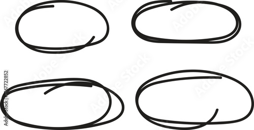 Four Hand Drawn Black Oval Shapes on White Background