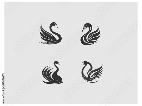 four images of swans and swans, are shown on a gray background vector, vector and illustration,