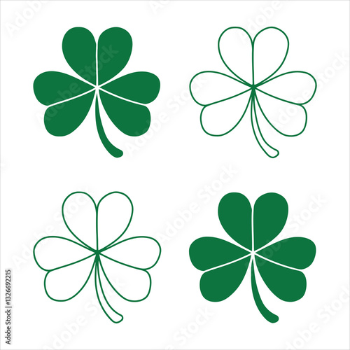 Four Leaf Clover Icon Set. Lucky Shamrock, St. Patrick’s Day Symbol, and Irish Fortune Vector.