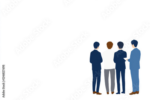 Four men in suits are standing together, looking at something