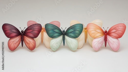 Four Pastel Translucent Butterflies on Light Gray Background