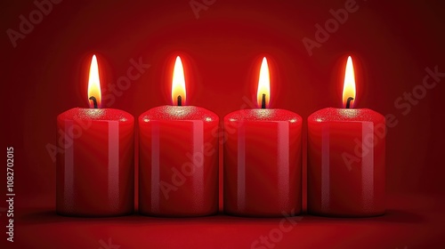 Four red burning candles on red background symbolizing romance and christmas festivities