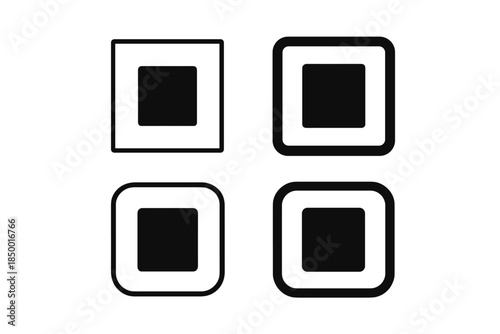 Four simple geometric shapes with rounded corners and a solid square inside