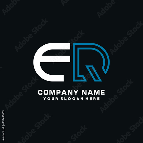 FQ initial logo oval shaped letter. Monogram Logo Design Vector, color logo white blue, white yellow,black background.