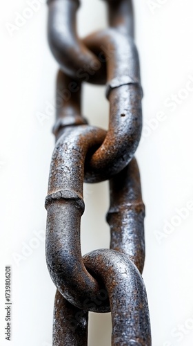 Fractured Chain Link Close-Up on White Background with Subtle Shadow Vertical Composition