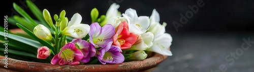 Fragrant freesia flowers in a small terrace garden, adding a touch of elegance