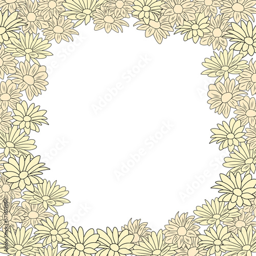 Frame with chrysanthemums. Background with golden flowers. Postcard with flowers. Vector illustration of flowers. Vector background with chrysanthemums.
