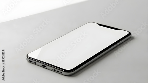 Frameless new modern smartphone mockup with white screen isolated on white background