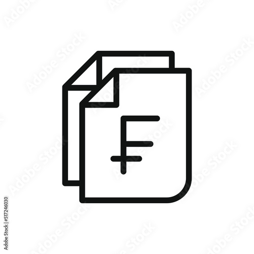 Franc sign on paper. Financial statement, money document, banknote line icon isolated on white background. Vector illustration