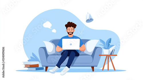 Freelancer relaxing while working on a laptop at home