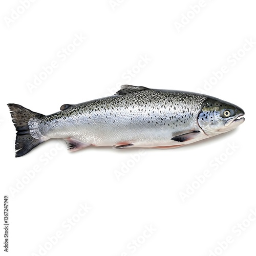 Fresh Atlantic Salmon Fish, Whole, Isolated on White