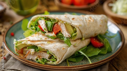 Fresh avocado fruit salad roll closeup view