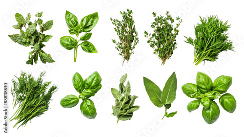 Fresh basil leaves isolated on a white background, highlighting their vibrant color and aromatic appeal
