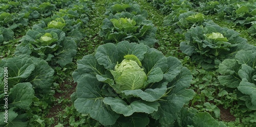 Fresh, beautiful cabbage fields create a vibrant scene that is a visual feast, capturing the essence of a thriving agricultural landscape