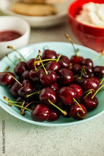 Fresh cherries in a bowl